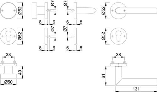 - Drückerlänge bei Aluminium 132 mm, bei Edelstahl 131 mm