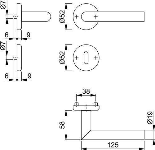 - Türgriffe mit Profilstift-Verbindung (8 mm Vierkant) für Türstärke 38-42 mm und Rückholfeder