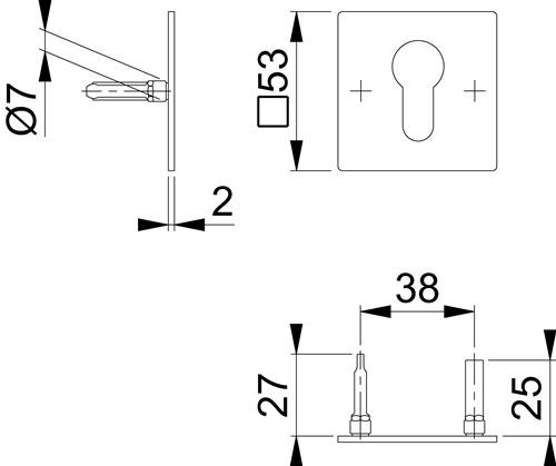 - 1x HOPPE Schlüsselrosetten-Paar E848NS VA F69 Schildst.2mm PZ quad