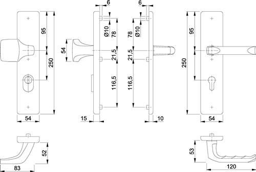 - 1x HOPPE Schutzgarnitur London 61G/2222ZA/2210/113 Alu.F4 92mm 67-72mm