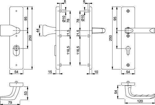 - 1x HOPPE Schutzgarnitur London 78G/2222ZA/2410/113 Alu.F1 92mm 66-71mm