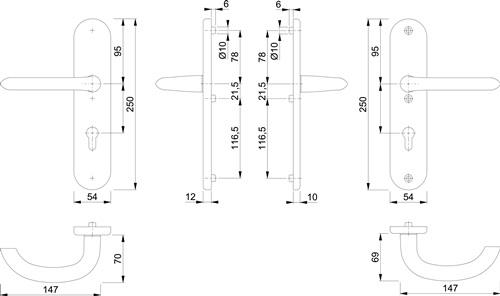 - 1x HOPPE Schutzgarnitur Mar.1138/3331/3410 Alu.F1 92mm 66-71mm