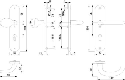 "HOPPE Schutzgarnitur Mar.76G/3331/3410/1138 Alu.F1 92mm 66-71mm - 3664591"