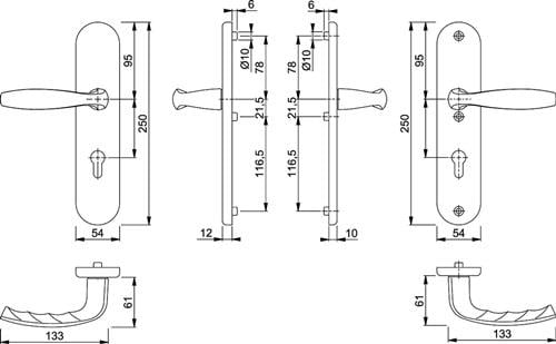 - innen: loser Türgriff, Schnellstift-Verbindung (mit HOPPE-FDW-Vollstift, abgesetzter Stift bei Variante 10 mm)