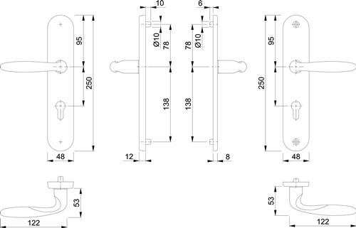 - 1x HOPPE Schutzgarnitur Pisa M151/361A/360 MS F77-R 92mm 67-72mm