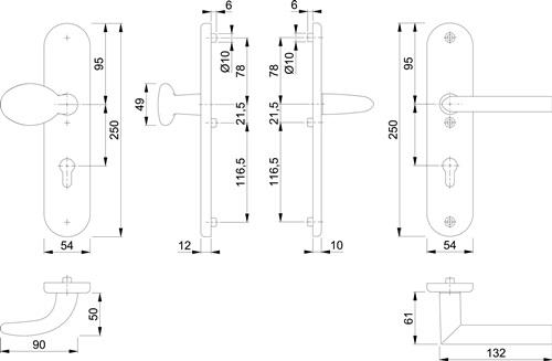 - 1x HOPPE Schutzgarnitur Stock.76G/3331/3410/1140 Alu.F1 92mm 67-72mm
