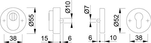 - 1x HOPPE Schutzrosettenpaar E42ZNSB-ZA/42HS VA F69 rd.m.ZA S.15mm
