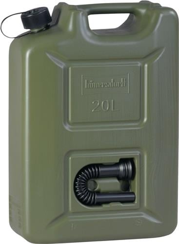 aus HD-PE Kindersicherheitsverschluss für alle Kraftstoffarten geeignet olivgrün mit UN-Zulassung nach ADR/GGVSEB mit einem integrierten, flexiblen, schwarzen Auslaufrohr für Fehlbetankungssysteme (Ottomotoren) stapelbar passt in handelsübliche Kanisterhalterungen Alle Kraftstoff-Kanister (UN/RKK) müssen ab dem 01.06.2015 vom Endverbraucher nach GHS/CLP Verordnung gekennzeichnet werden. Zur Kennzeichnung dienen unsere Kanister-Haftetiketten Art.-Nr. 4000 818 984 Inhalt: 20 l Farbe: olivgrün Breite: 165 mm Länge: 350 mm Marke: HÜNERSDORFF Material: HDPE Höhe: 495 mm