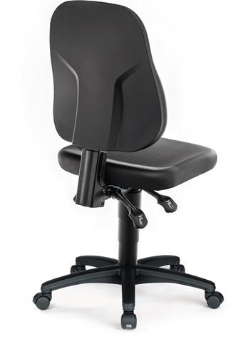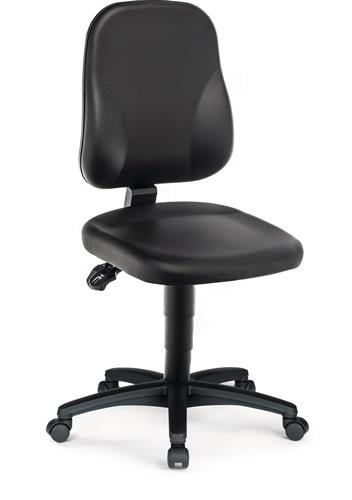 nach DIN 68877 bedienungsfreundliche Gasfeder-Sitzhöhenverstellung ergonomisch geformter Sitz mit integrierter Lordosenstütze Neigungsverstellung von Sitz und Rückenlehne Rückenlehne mit Permanentkontakt und Höhenverstellung Komfortpolsterung mit Kunstlederbezug , leicht abwaschbar Fünffuß-Untergestell aus Kunststoff, flach auslaufend, kipp- und stolpersicher mit lastabhängig gebremsten Sicherheits-Doppelrollen für harte Böden Ausführung: Permanentkontakt Gestellausführung: Rollen Sitz/Rückenlehne: Kunstlederpolster Polsterfarbe: schwarz Sitzhöhenverstellung: 450-620 mm Marke: BIMOS