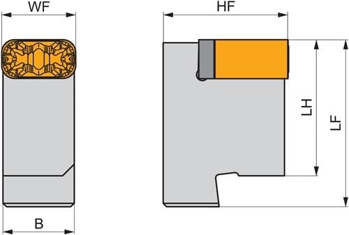 Modular Drehsystem mit Knieheblklemmung zum spannen von Rechteckig negative Wendeschneidplatten mit einer Hauptschneidenlänge von 19.05mm (ISO Bezeichnung LN.X 1919.. ) · für die Radsatzbearbeitung · zur Montage mit DKTL 5055 X A2 für Stirndrehen ohne Schulter Weitere technische Eigenschaften: · Bruttogewicht: 222,2g · Fräserdesign: KTP-LFN(RL) · Funktionsbreite - Metrisch: 19mm · Funktionshöhe - Metrisch: 32mm · Funktionslänge - Metrisch: 43mm · Klemmtypcode: P - Lochklemmung · Kopflänge - Metrisch: 35mm · Nettogewicht: 222,2g · Orthogonaler Spanwinkel: 0Grad · Schaftbreite - Metrisch: 18,25mm · Schneidrichtung: Rechts