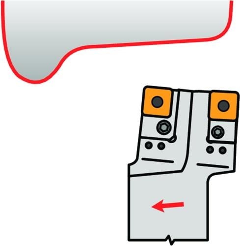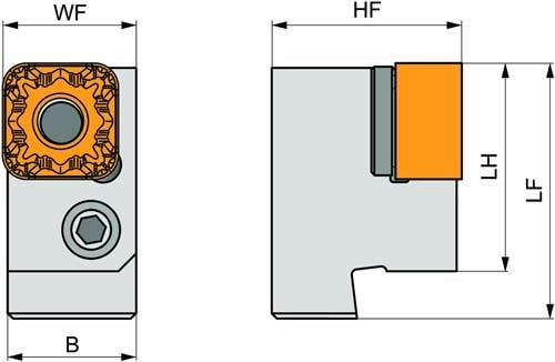 Modular Drehsystem mit Knieheblklemmung zum spannen von Viereckig negative Wendeschneidplatten mit einem Innenkreisdurchmesser von 19.05mm · 11mm Dick (ISO Bezeichnung SNMX 1911.. ) · für die Radsatzbearbeitung · zur Montage mit DKTR 5055 X (A1/A2) für Kegeldrehen und Längsdrehen ohne Schulter Weitere technische Eigenschaften: · Bruttogewicht: 186g · Fräserdesign: KTP-SAN(RL) · Funktionsbreite - Metrisch: 23mm · Funktionshöhe - Metrisch: 32mm · Funktionslänge - Metrisch: 43mm · Klemmtypcode: P - Lochklemmung · Kopflänge - Metrisch: 35mm · Nettogewicht: 186g · Orthogonaler Spanwinkel: 0Grad · Schaftbreite - Metrisch: 22mm · Schneidrichtung: Rechts