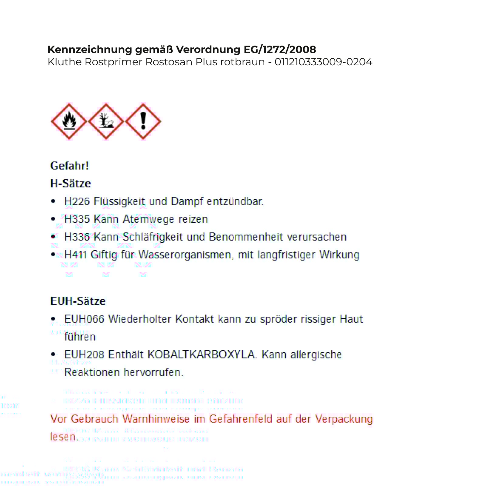 - EUH208 Enthält KOBALTKARBOXYLA. Kann allergische Reaktionen hervorrufen.