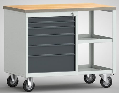 "KLW-LUTZ BETRIEBSEINRICHTUNGEN Werkbank PW700 B855xT700xH805mm Buche Multipl.lichtgrau/grau 2 Schubl. - WNS822N-1000M20-E1901 7035/701"