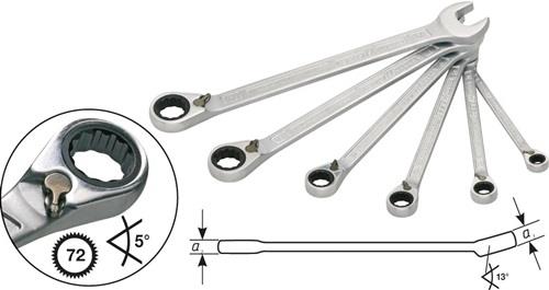mit Umschaltung · aus CV-Stahl · verchromt · Maulstellung 15°, Ringseite um 13° abgewinkelt · 72 Zähne Weitere technische Eigenschaften: · Material: CV-Stahl · Verpackung: Karton · Zähne: 72 · Schlüsselweiten: 21-32mm