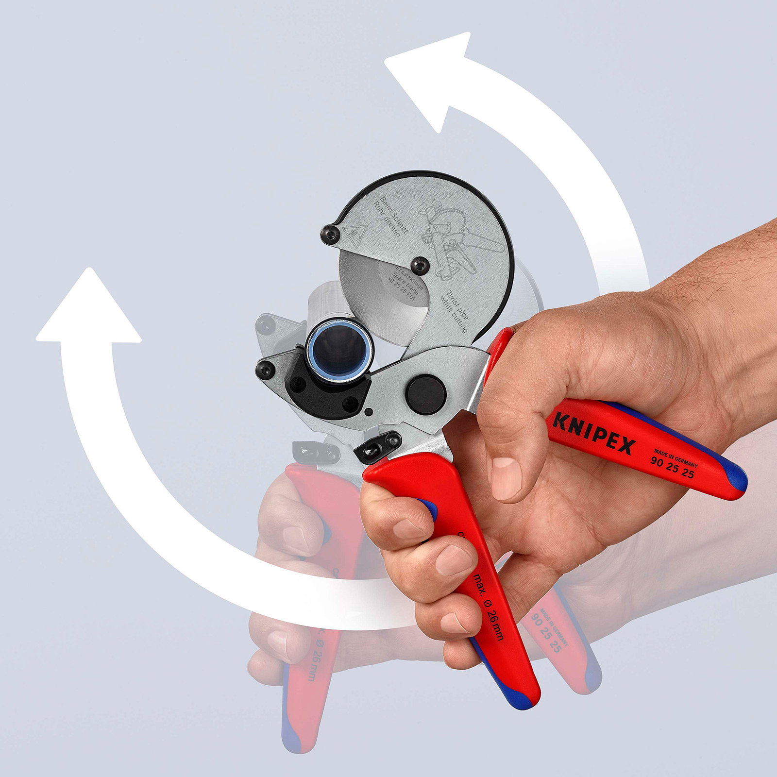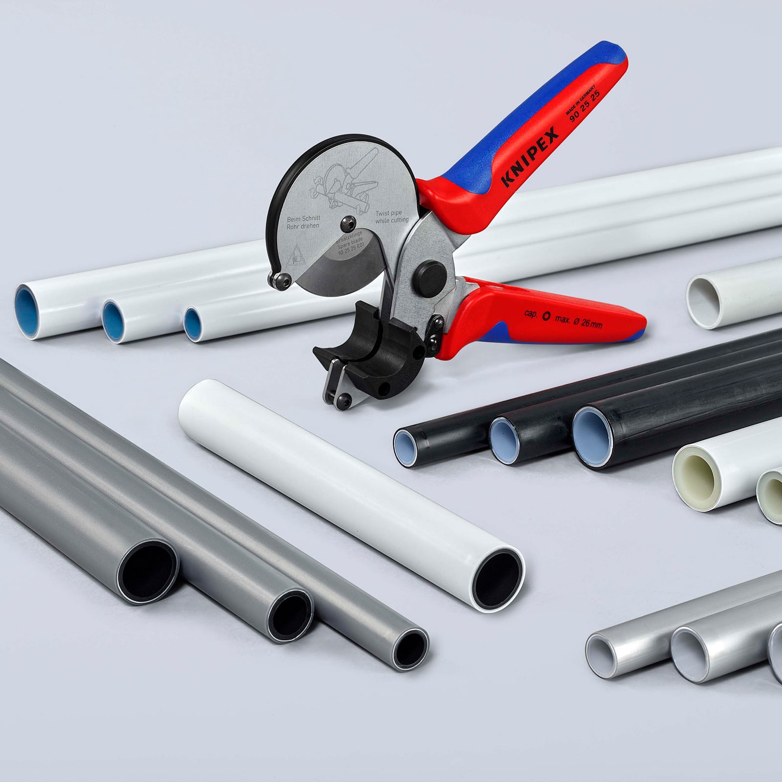 - Zum Schneiden von Verbund- und Kunststoffrohren bis Ø 26 mm