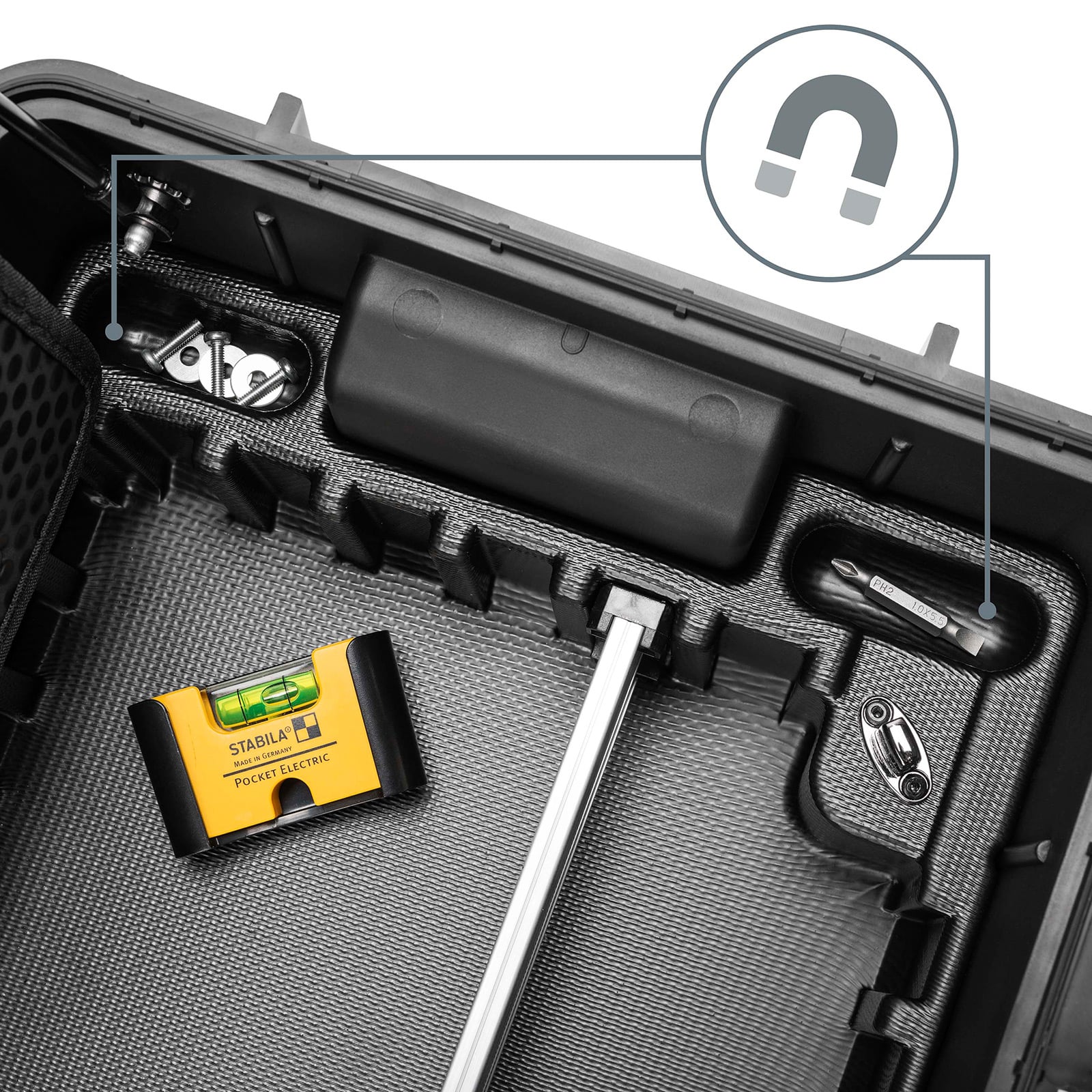- Harte Arbeit wird smarte Arbeit: Maximale Flexibilität dank 19 Werkzeugtaschen und 61 Halteschlaufen sowie anpassbarem Aluminium-Trennstegesystem.