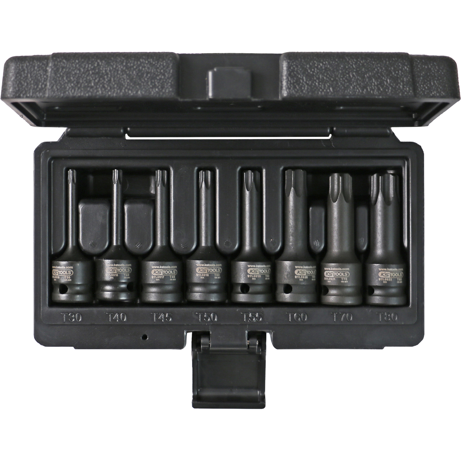 1x KS TOOLS 1/2" Kraft-Bit-Stecknuss-Satz Torx 8tlg. T30 - T80 lang