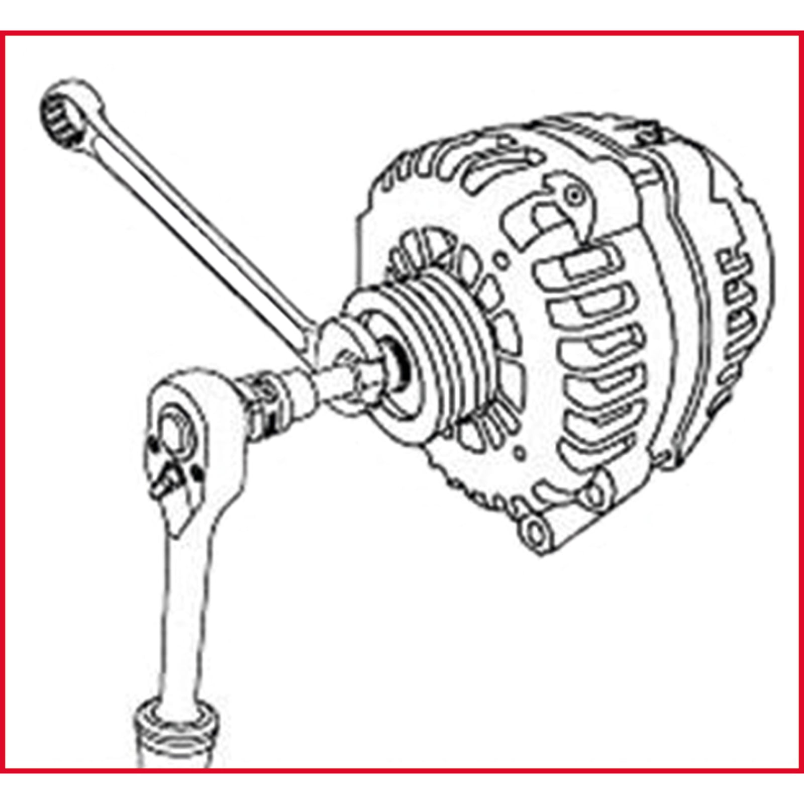 - ermöglicht das Lösen und Befestigen der Zentralmutter bei gleichzeitigem Gegenhalten der Riemenscheibenwelle