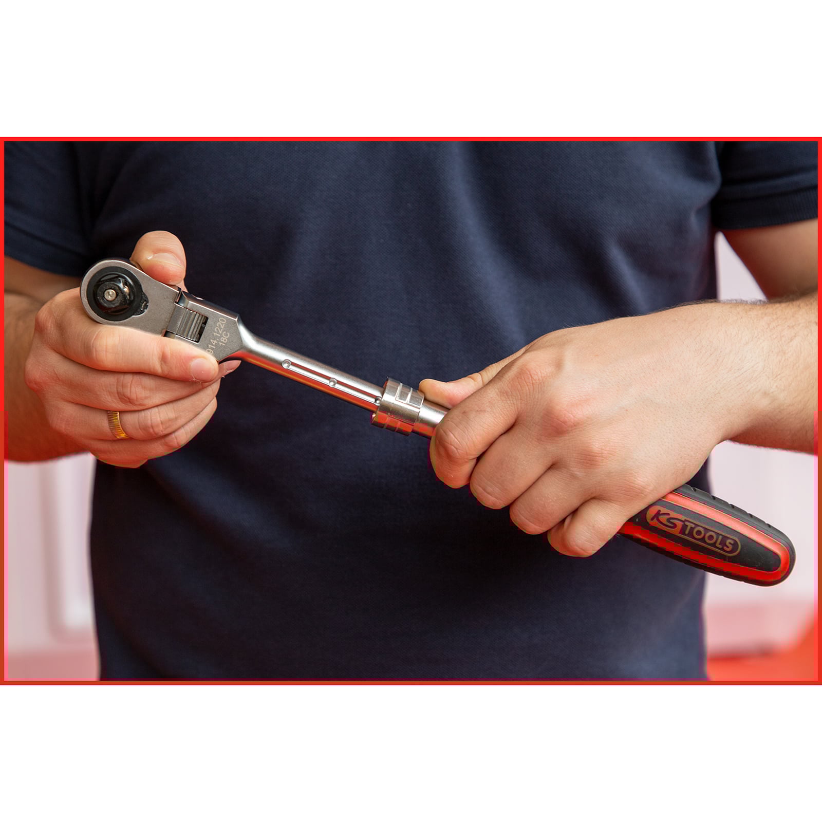 1x KS TOOLS 1/2" SlimPOWER Teleskop-Gelenk-Umschaltknarre 72 Zahn