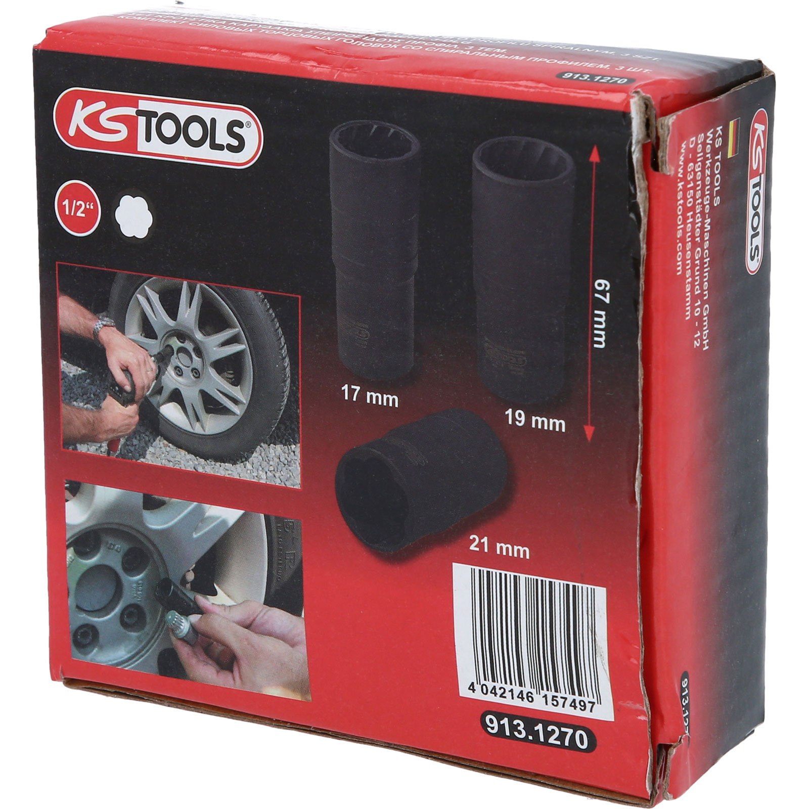 "KS TOOLS 1/2" Spiral-Profil-Kraft-Stecknuss-Satz 3tlg. 17 - 21 mm - 913.1270"