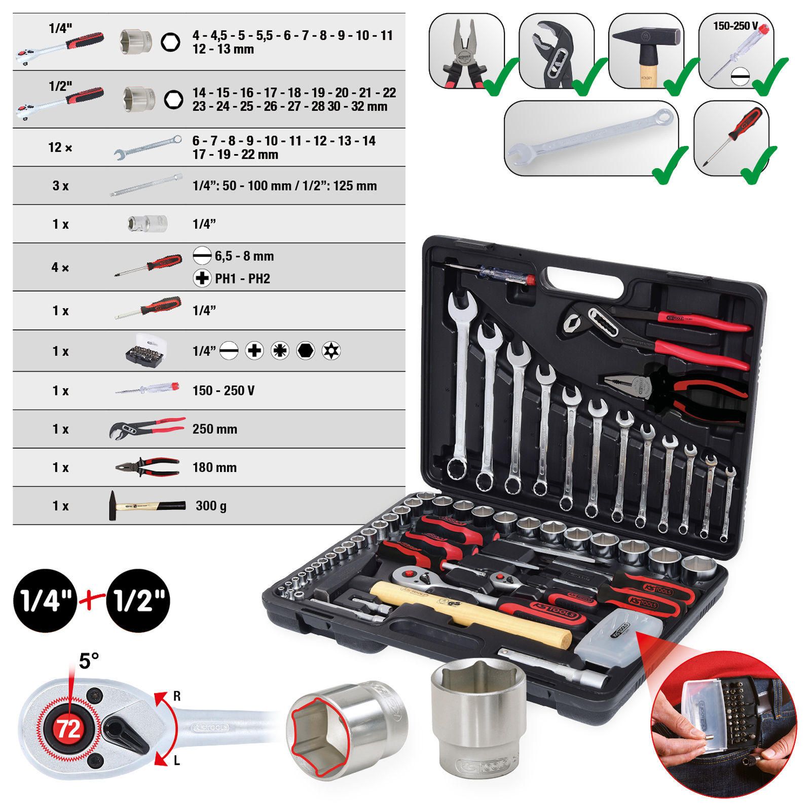 1x KS TOOLS 1/4"+1/2" Werkzeug-Satz 88tlg.