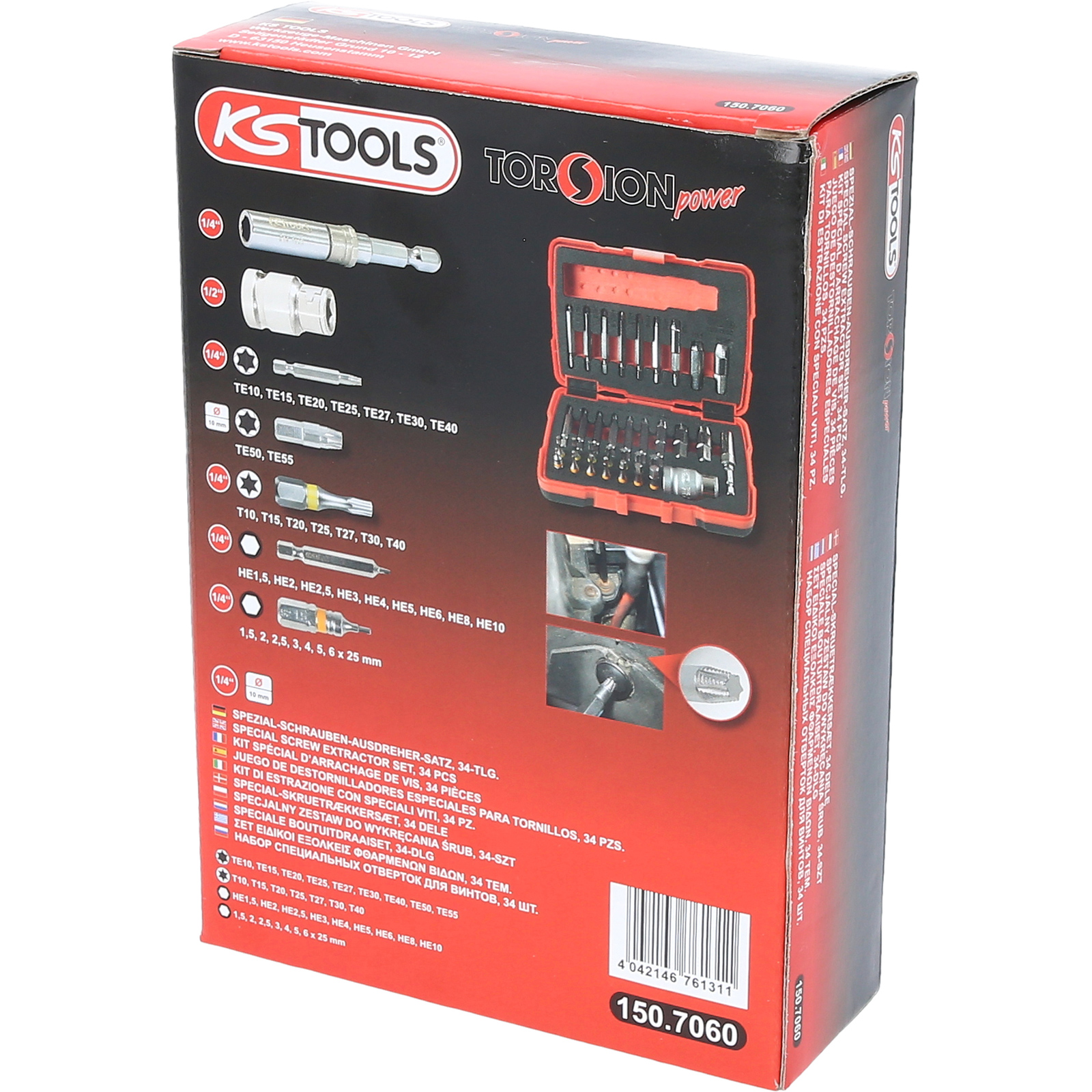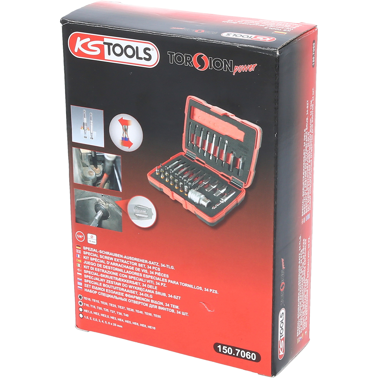 "KS TOOLS 1/4" + 10 mm Torx- und Innensechskant-Schrauben-Ausdreher-Satz 34tlg. - 150.7060"
