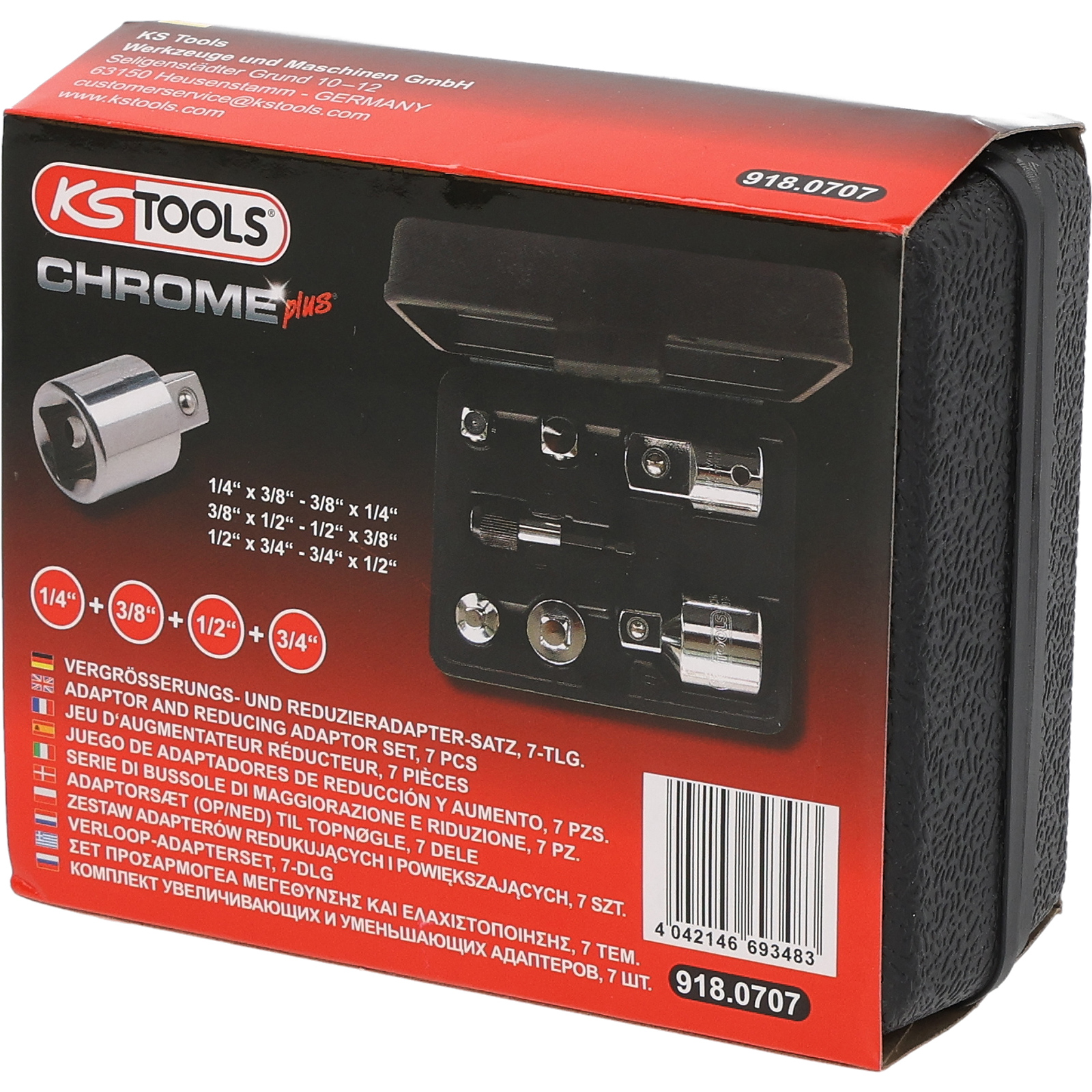 "KS TOOLS 1/4"+3/8"+1/2"+3/4" CHROMEplus Vergrößerungs- und Reduzieradapter-Satz 7tlg. - 918.0707"