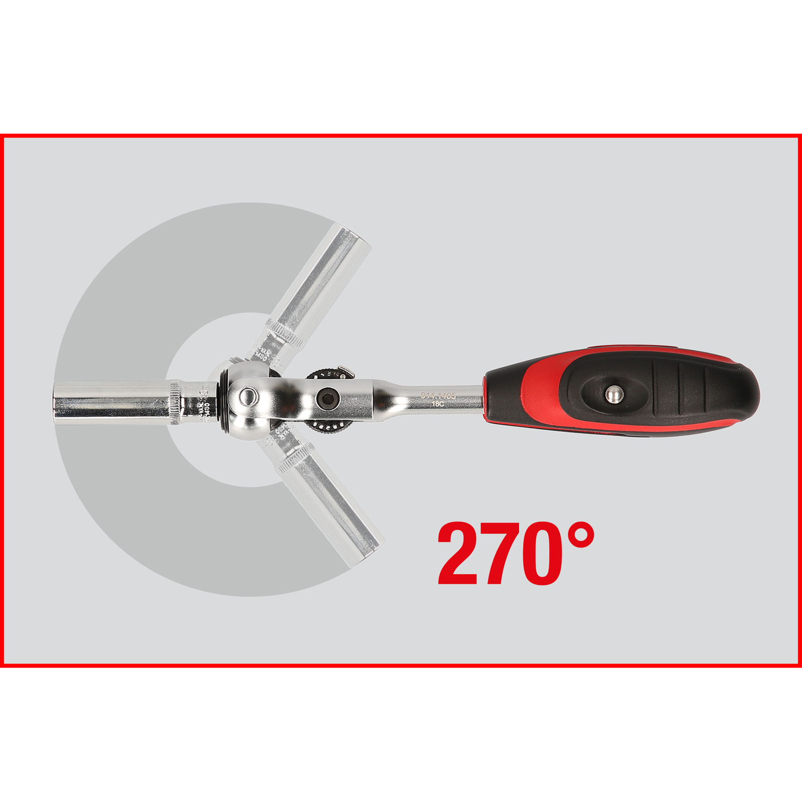 Anwendung: T-Griff-Knarre / Schraubendreher-Knarre. Verstellbar in 2 Positionen 0° + 90°