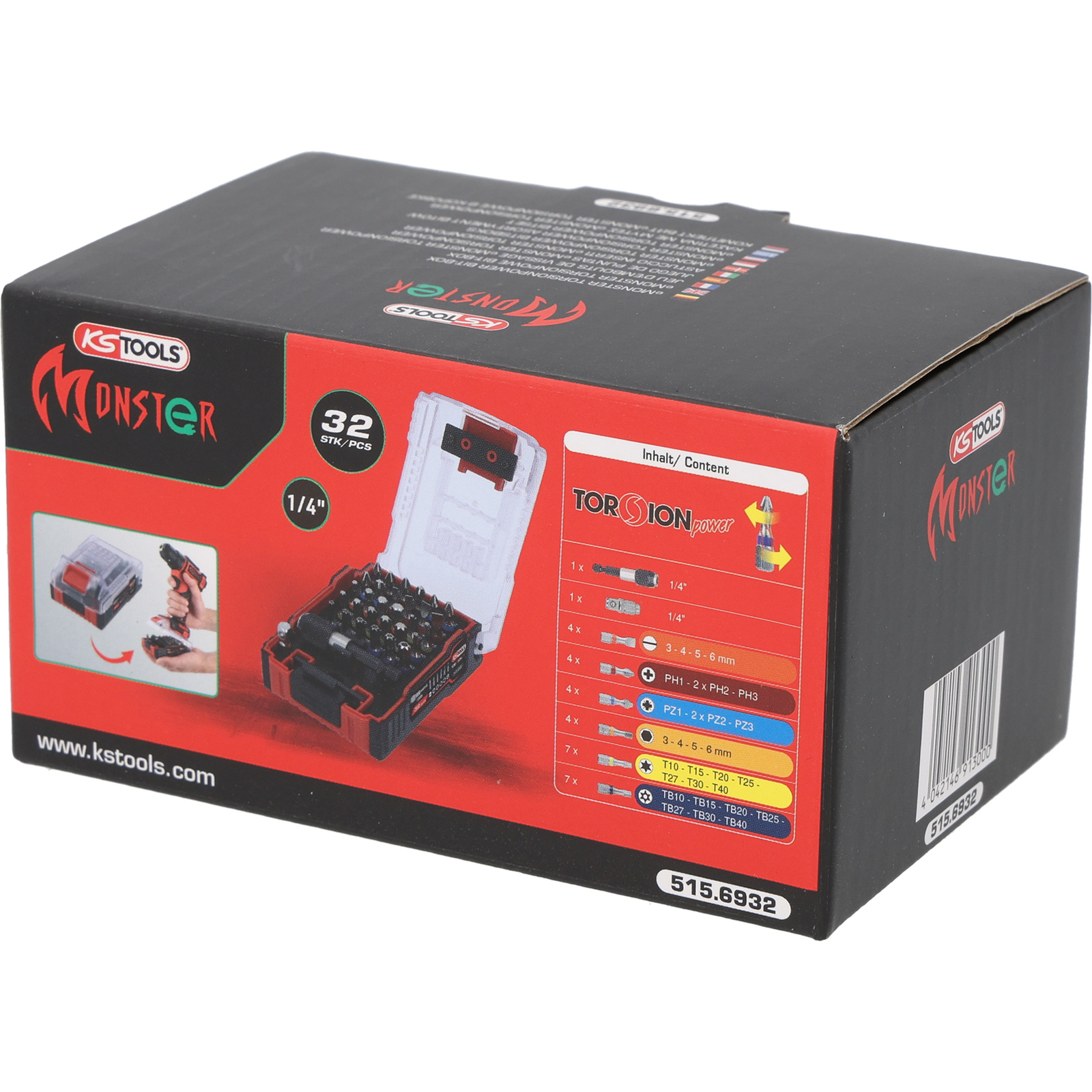"KS TOOLS 1/4" TORSIONpower Bit-Satz im eMONSTER-Akku-Design 32tlg. - 515.6932"