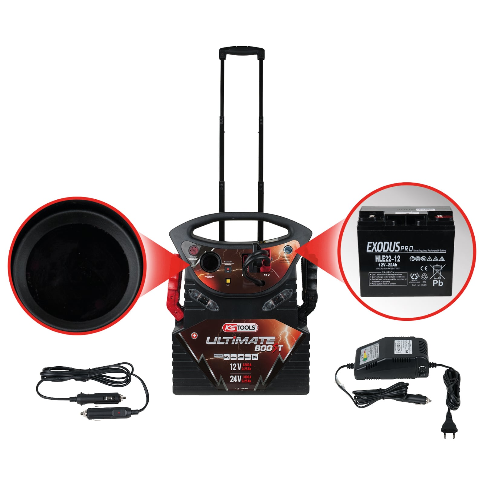 "KS TOOLS 12 V + 24 V Batterie-Booster mobiles Starthilfegerät 2340 A - 550.1825"
