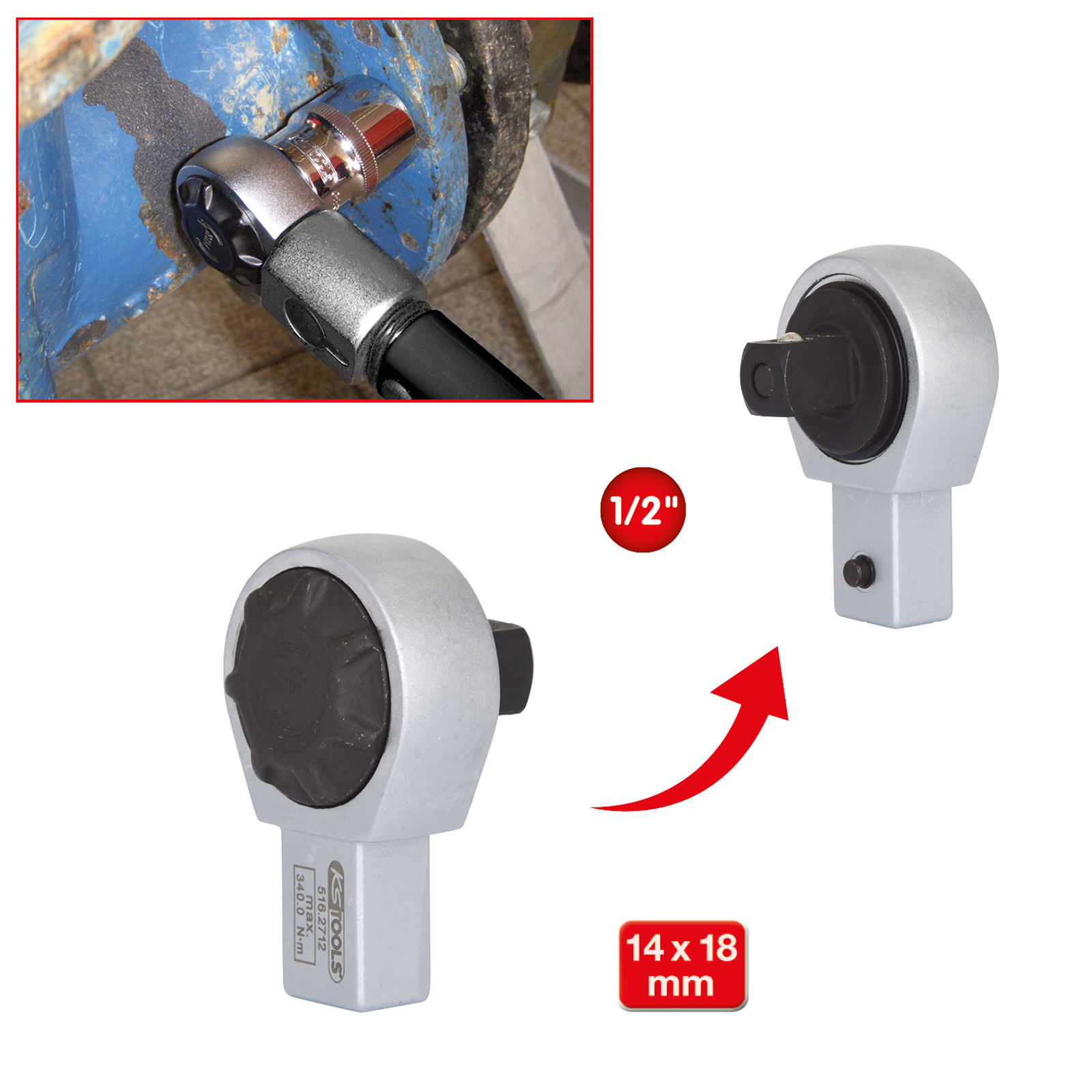 "KS TOOLS 14 x 18 mm Einsteck-Umschaltknarre 1/2" - 516.2712"