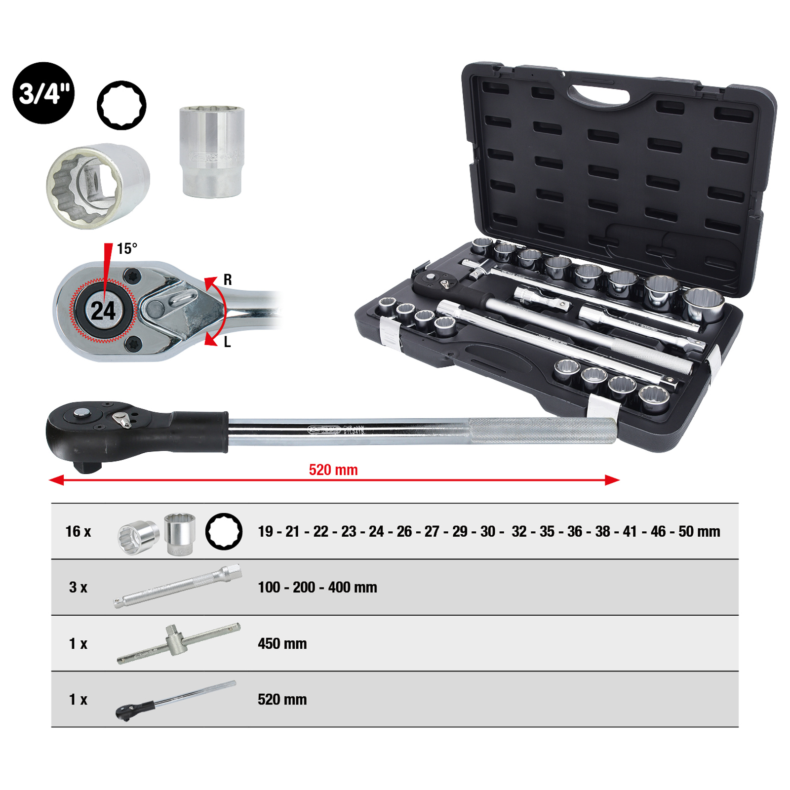 "KS TOOLS 3/4" Steckschlüssel-Satz 21tlg. - 911.0722"