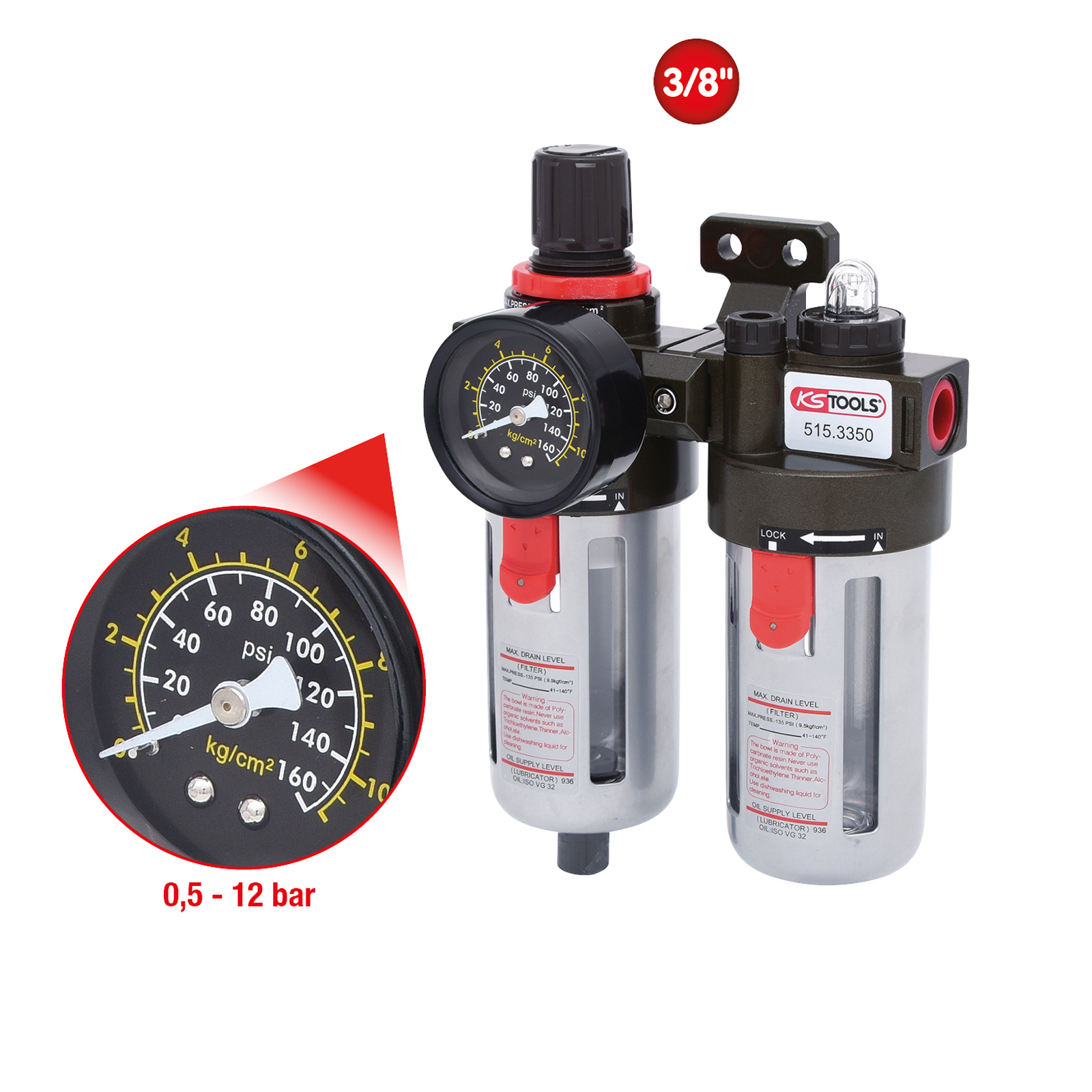"KS TOOLS 3/8" Druckluft-Wartungseinheit 0,5-12bar - 515.3350"