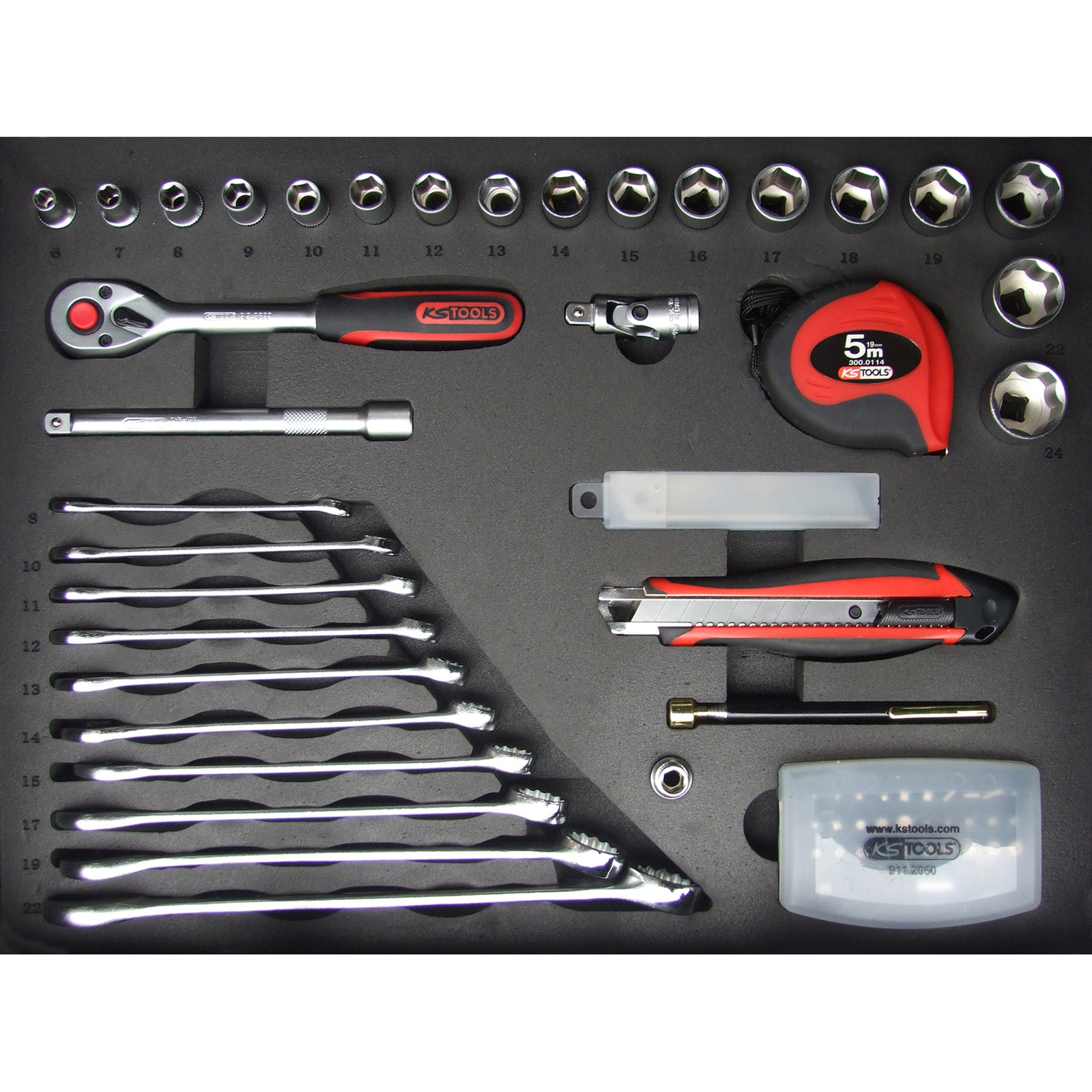 - je 1x KS TOOLS 3/8" Sechskant-Stecknuss, 6 mm, 7 mm, 8 mm, 9 mm, 10 mm, 11 mm, 12 mm, 13 mm, 14 mm, 15 mm, 16 mm, 17 mm, 18 mm, 19 mm, 21 mm, 22 mm, 24 mm