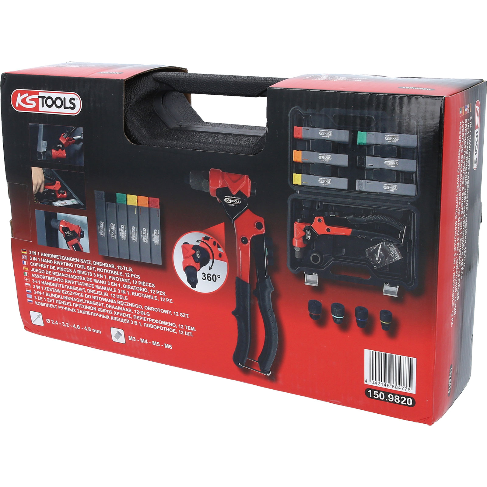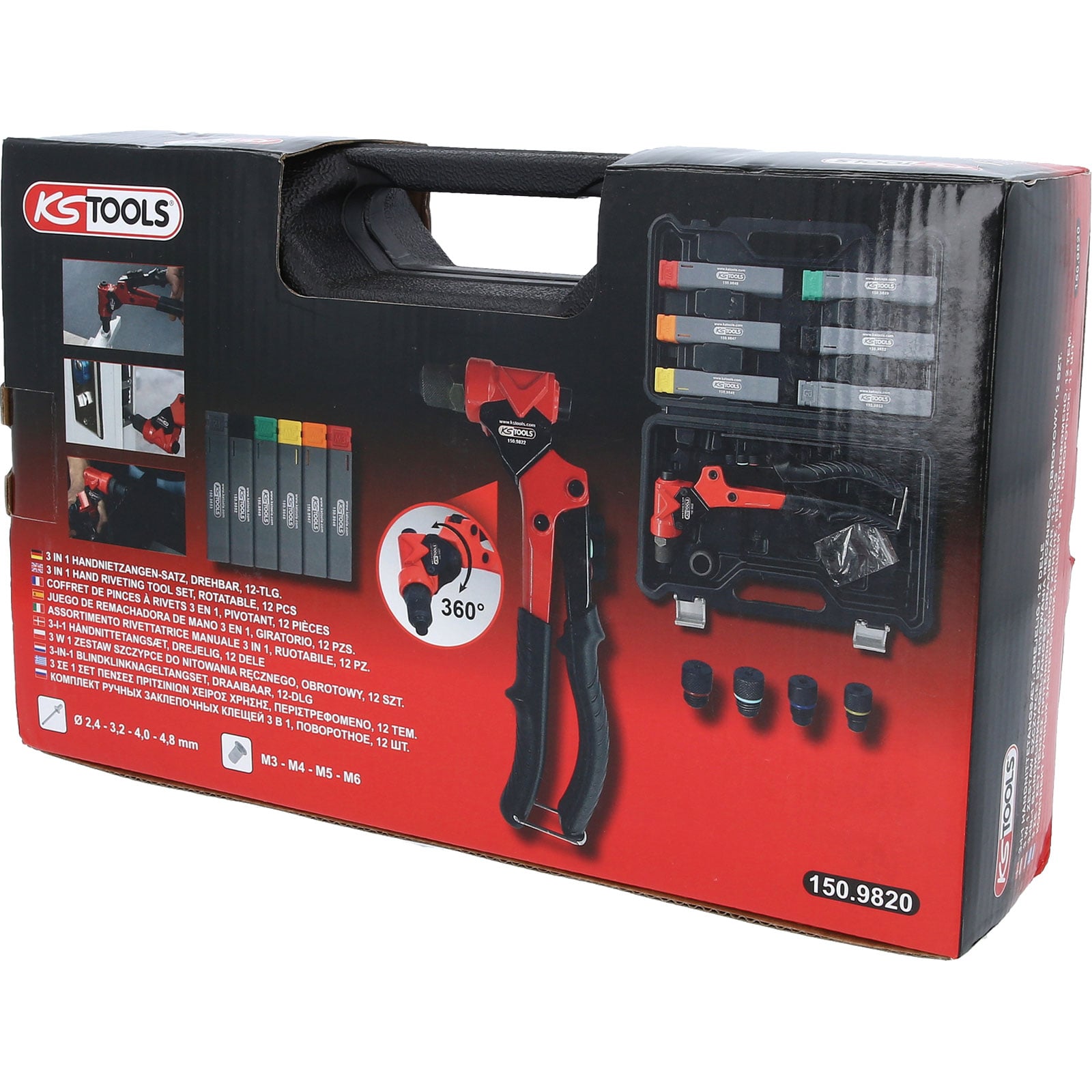 "KS TOOLS 3 in 1 Handnietzangen-Satz, drehbar, 12-tlg. - 150.9820"