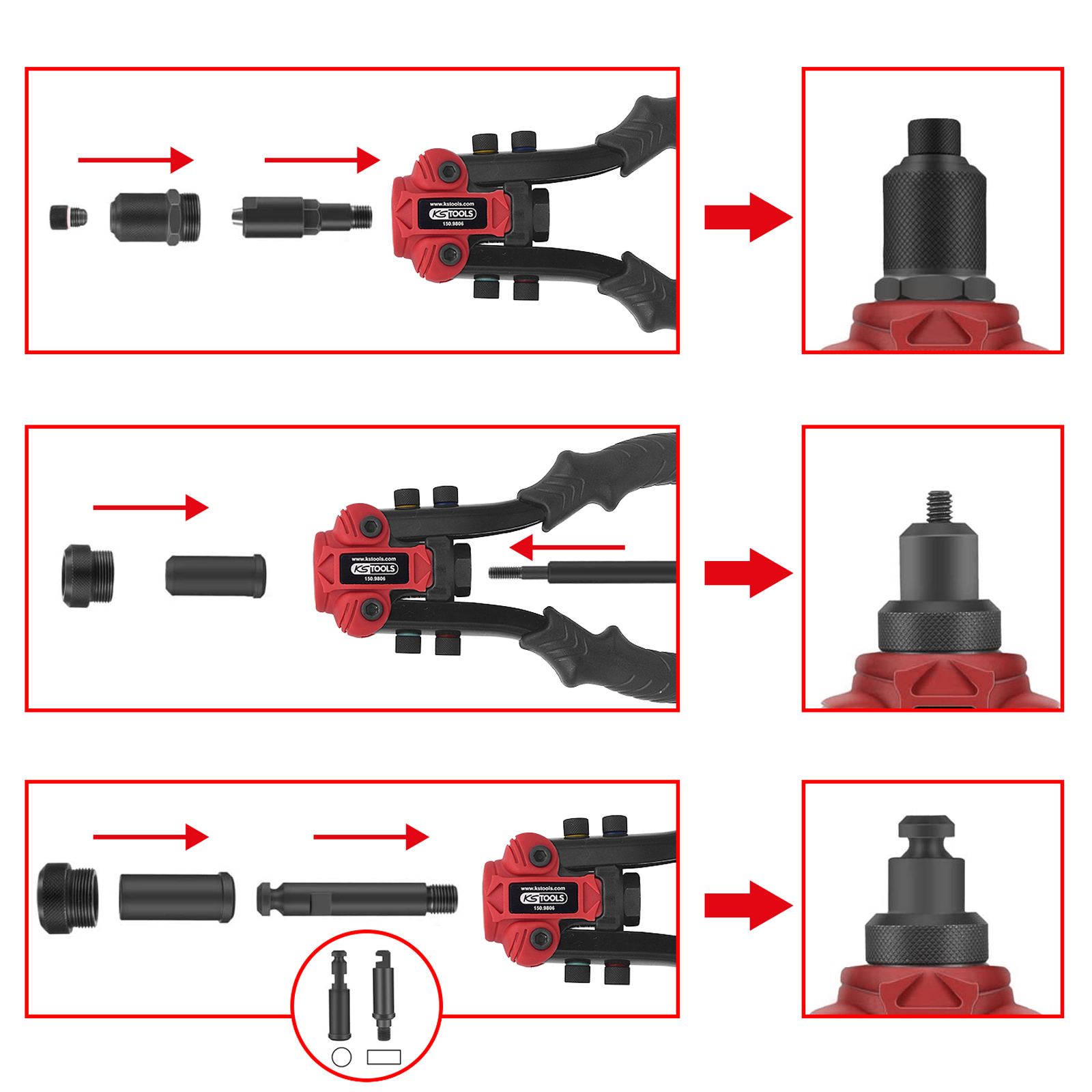 "KS TOOLS 3 in 1 Nietzangen-Satz 15tlg.. - 150.9805"