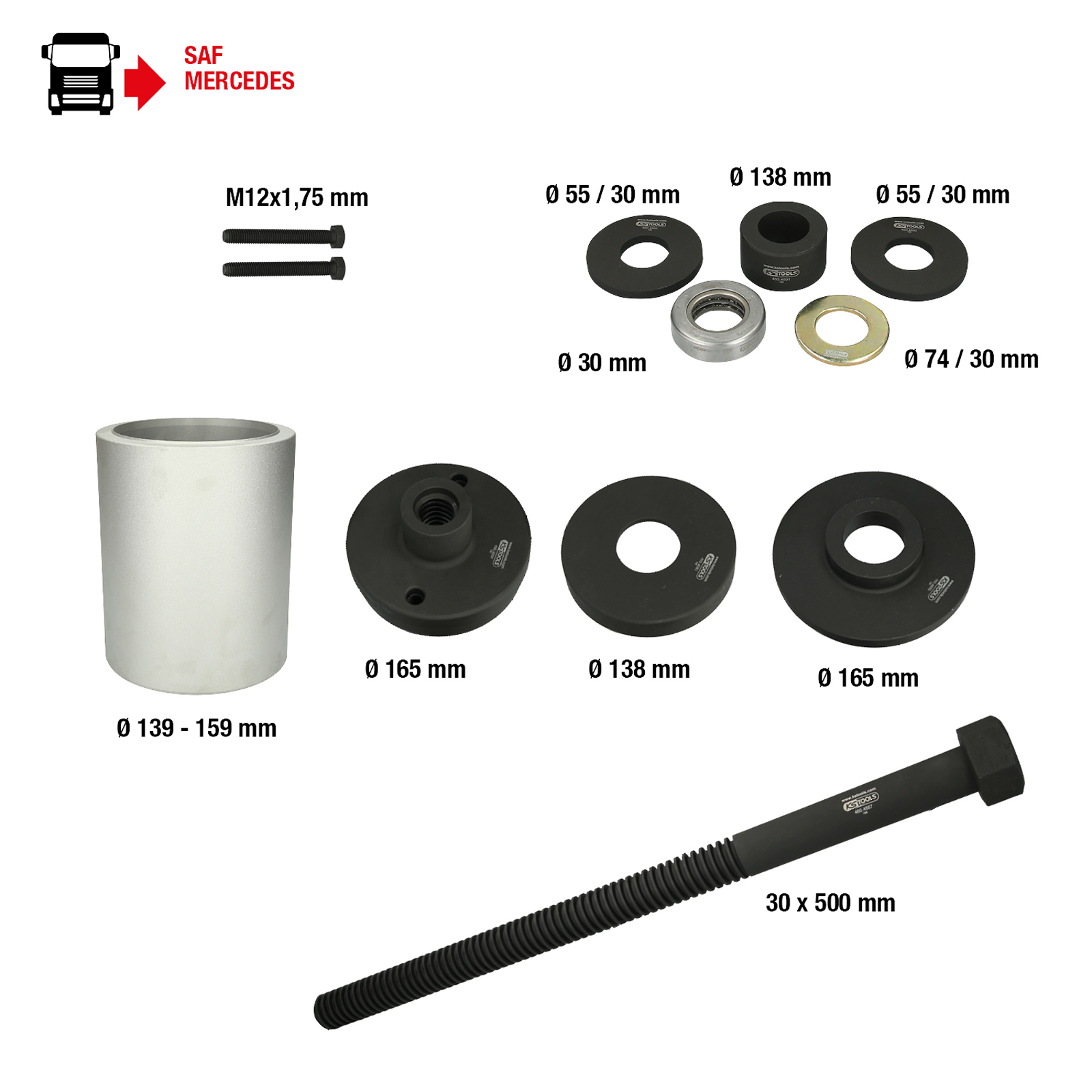 "KS TOOLS 3D-Buchsen-Werkzeug-Satz für SAF-Achsen Mercedes DCA- und HT-Achsen 12tlg. - 460.4885"