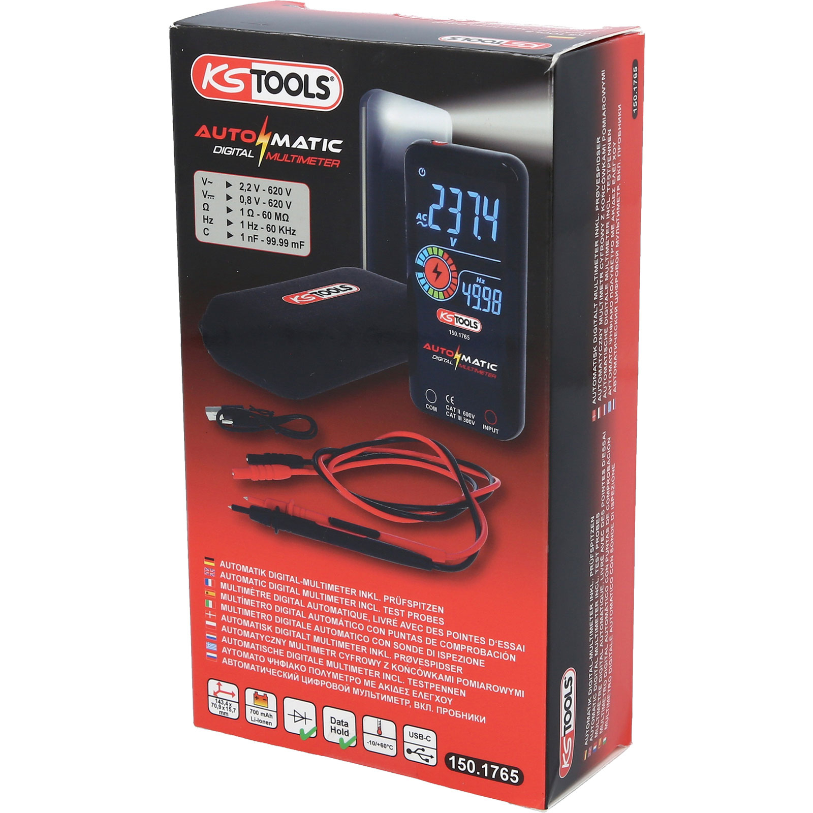 "KS TOOLS Automatik Digital-Multimeter inkl. Prüfspitzen - 150.1765"