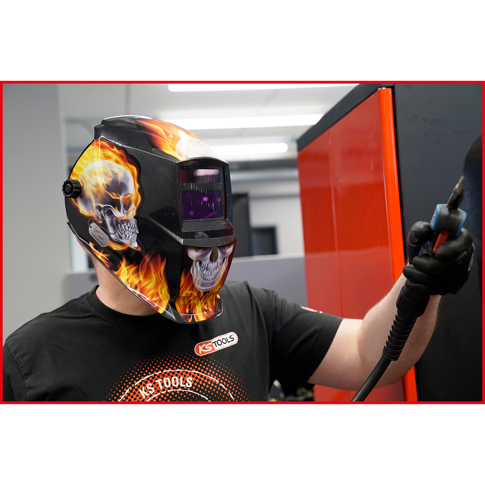 1x KS TOOLS Automatik-Schweißer-Schutzhelm Flame Design