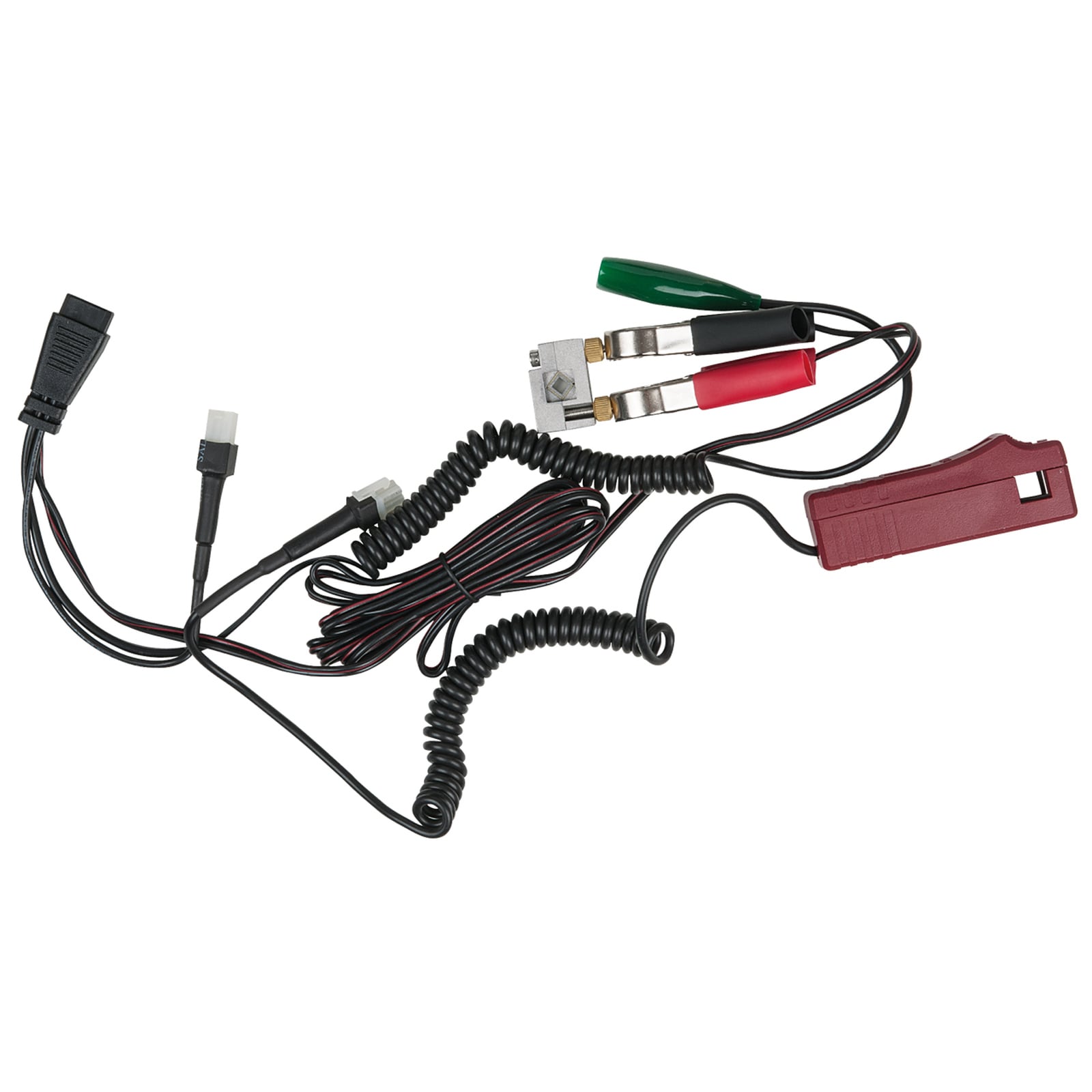 - zusätzliche Krokodilklemme und Induktivzange zur Messung von Drehzahl, Schließwinkel und Spannungstest