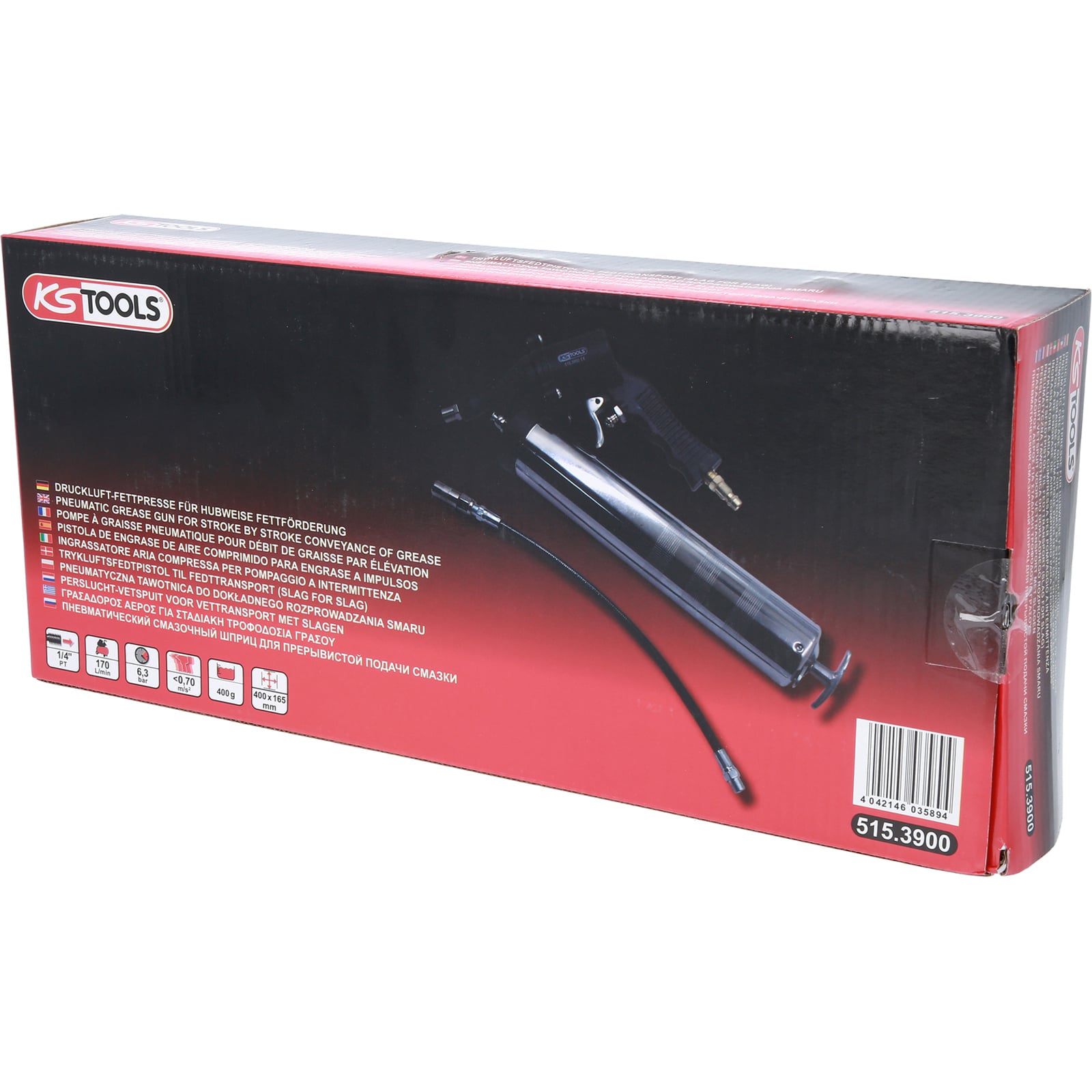 1x KS TOOLS Druckluft-Fettpresse mit flexiblem Schlauch und Düse