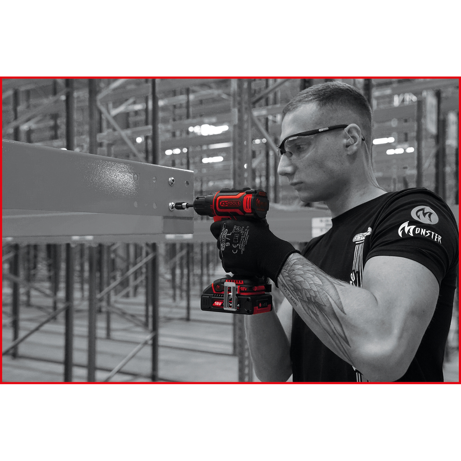 1x KS TOOLS eMONSTER Brushless-Akku-Bohr-Schrauber-Satz 4tlg.