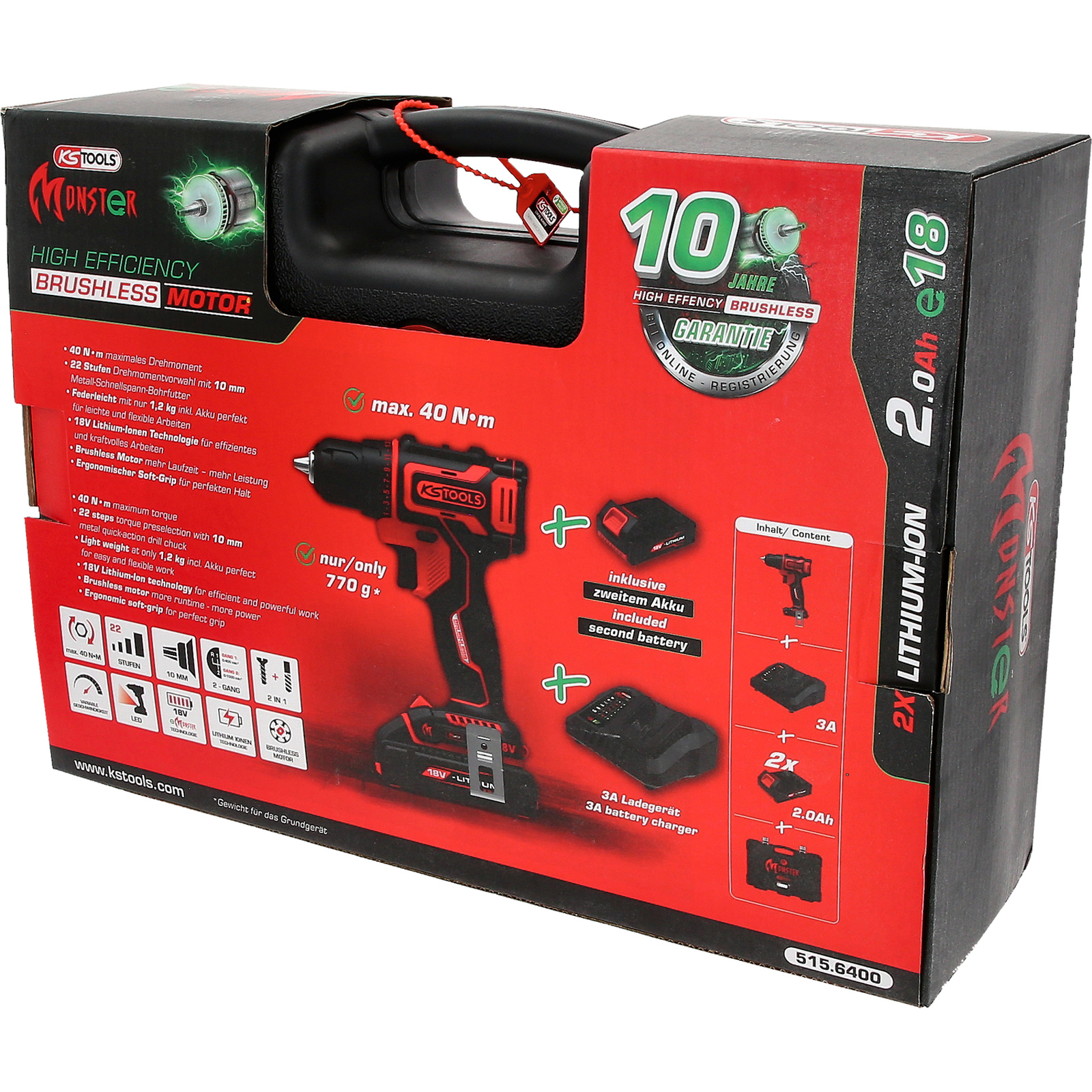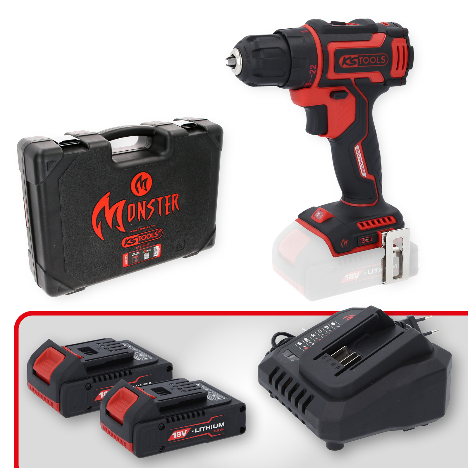 "KS TOOLS eMONSTER Brushless-Akku-Bohr-Schrauber-Satz 4tlg. - 515.6400"