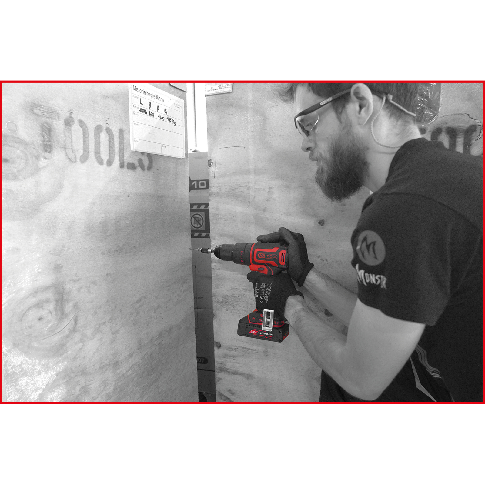 Der eMONSTER Brushless-Akku-Schlag-Bohr-Schrauber ist ein äußerst vielseitiges Werkzeug und der Allrounder in der eMONSTER Serie. Dieser Akku-Schlag-Bohr-Schrauber kann flexibel zum Schlag-Bohren, Bohren oder Schrauben eingesetzt werden. Mit der integrierten Drehmomentvorwahl kann die Kraft präzise in 25 Stufen bis zu einem maximalen Drehmoment von 60 Nm eingestellt werden. Dies macht den Akku-Schlag-Bohr-Schrauber äußerst leistungsstark und anpassungsfähig. Das hochwertige 2-Gang Getriebe ermöglicht den Betrieb mit Drehzahlen von bis zu 450 min-1 im ersten Gang und bis zu 1900 min‑1 im zweiten Gang. Dadurch kann der Schlag-Bohr-Schrauber sowohl für präzises Arbeiten als auch für schnelles Vorankommen bei anspruchsvollen Aufgaben genutzt werden.