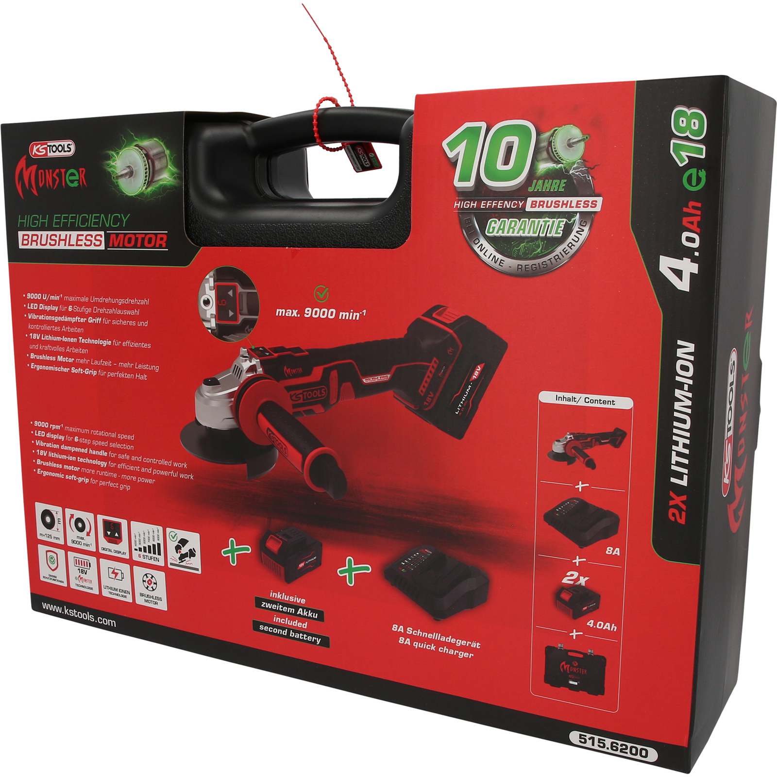 "KS TOOLS eMONSTER Brushless-Akku-Winkelschleifer-Satz 4tlg. - 515.6200"