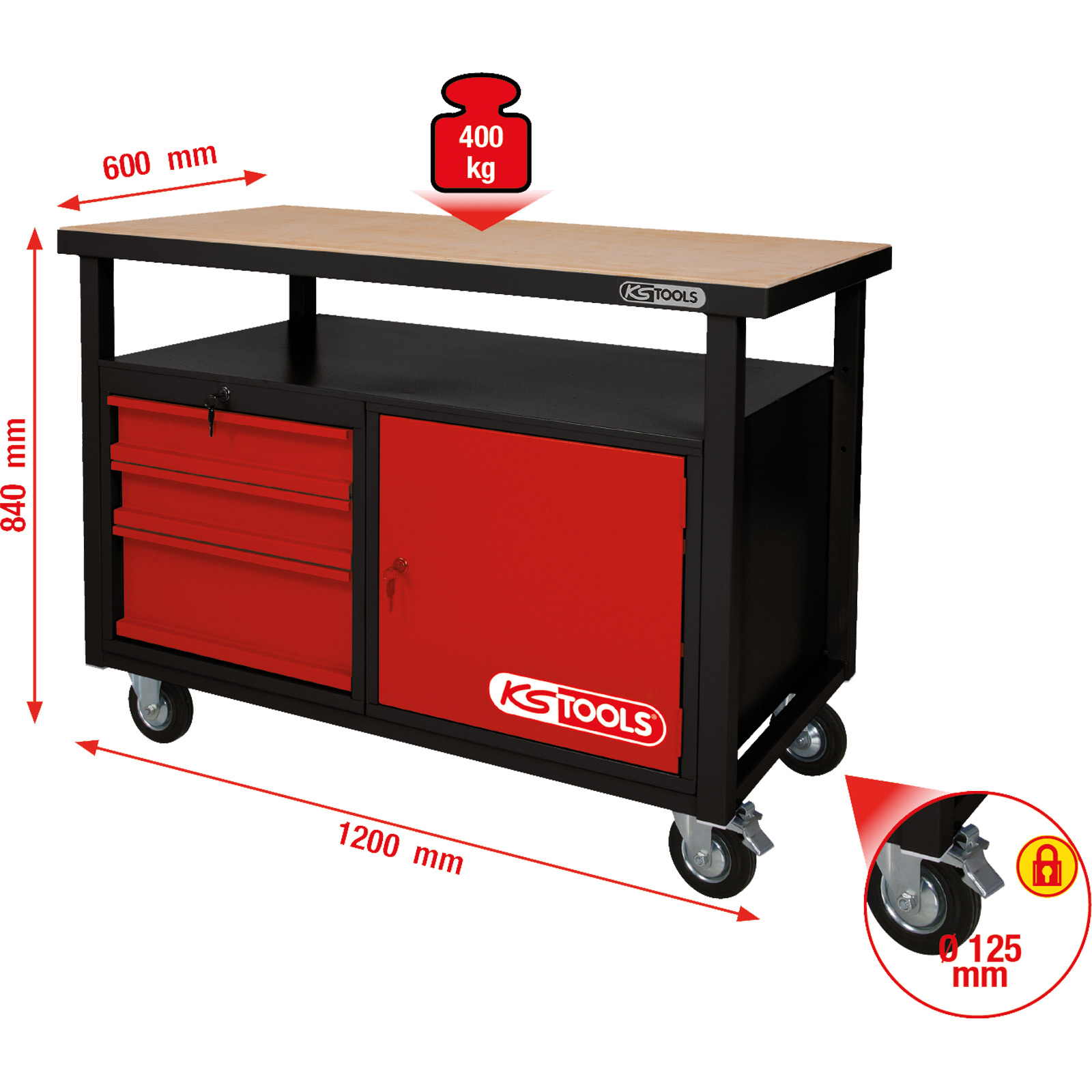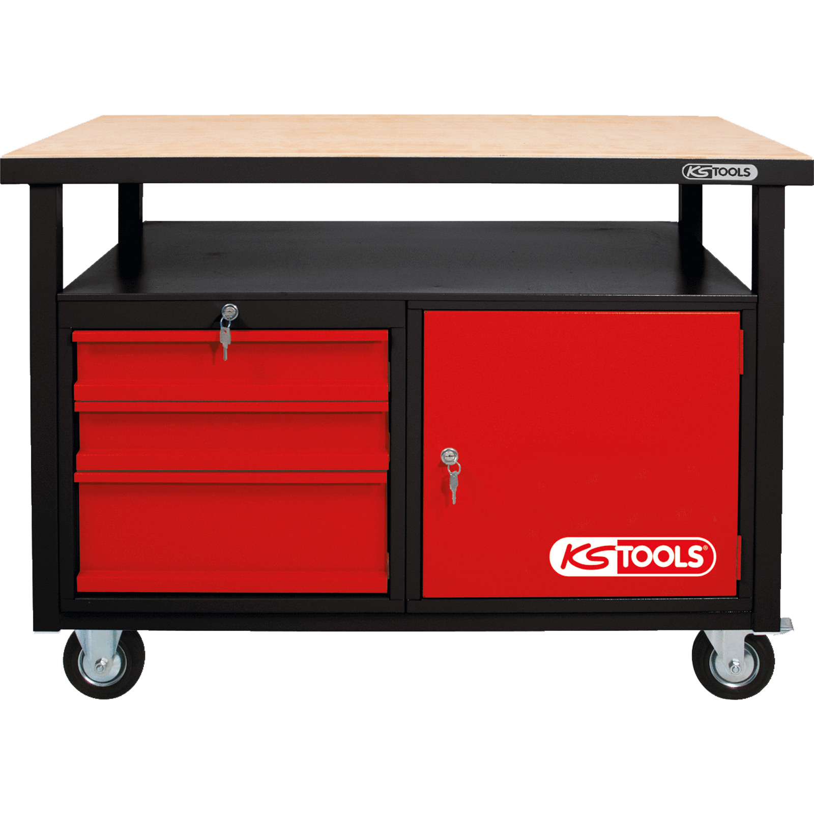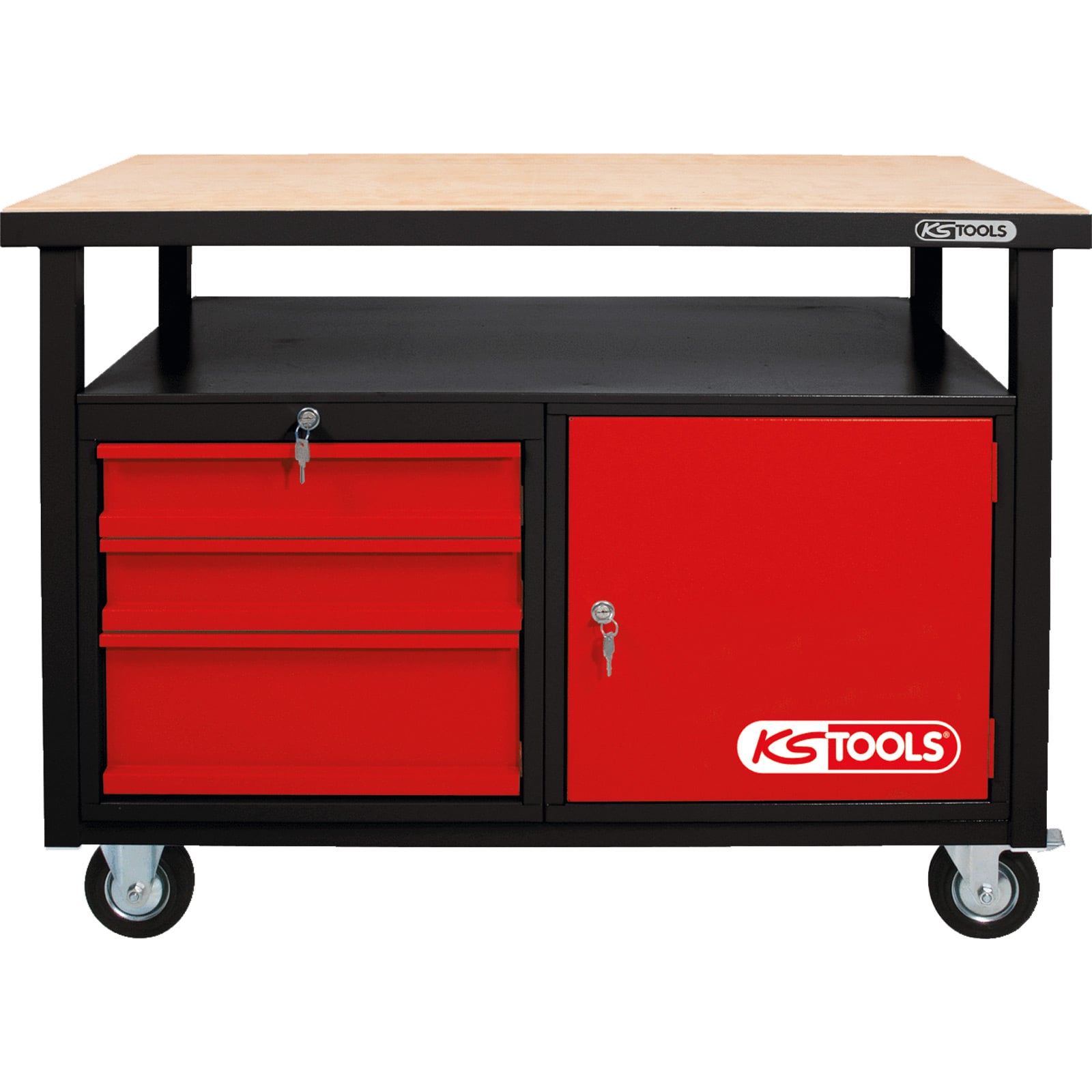 1x KS TOOLS Fahrbare Werkbank mit 3 Schubladen und 1 Tür