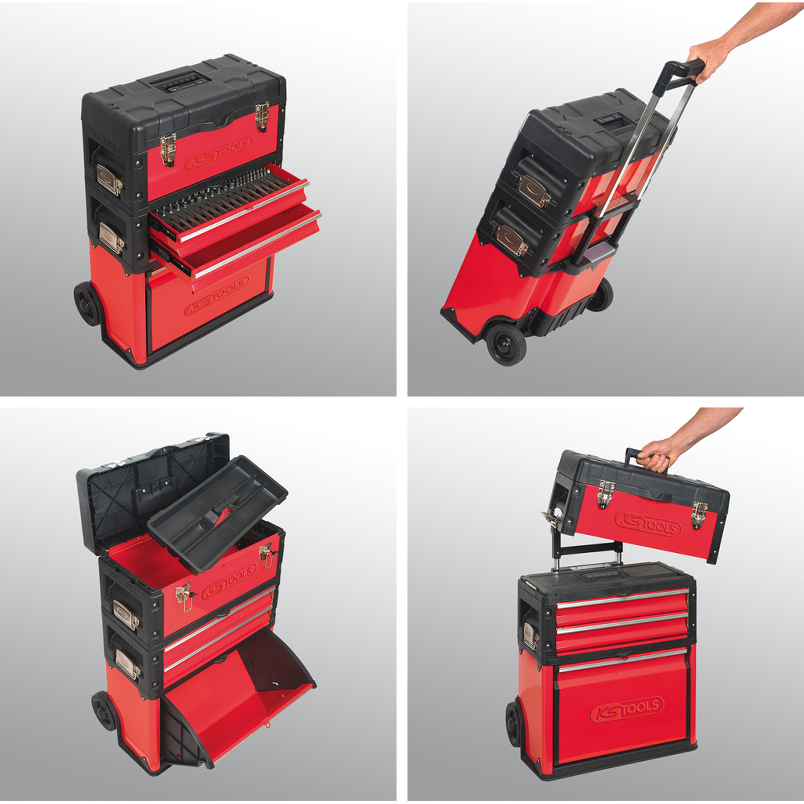 1x KS TOOLS Fahrbarer Kunststoff-Stahlblech-Werkzeugkasten