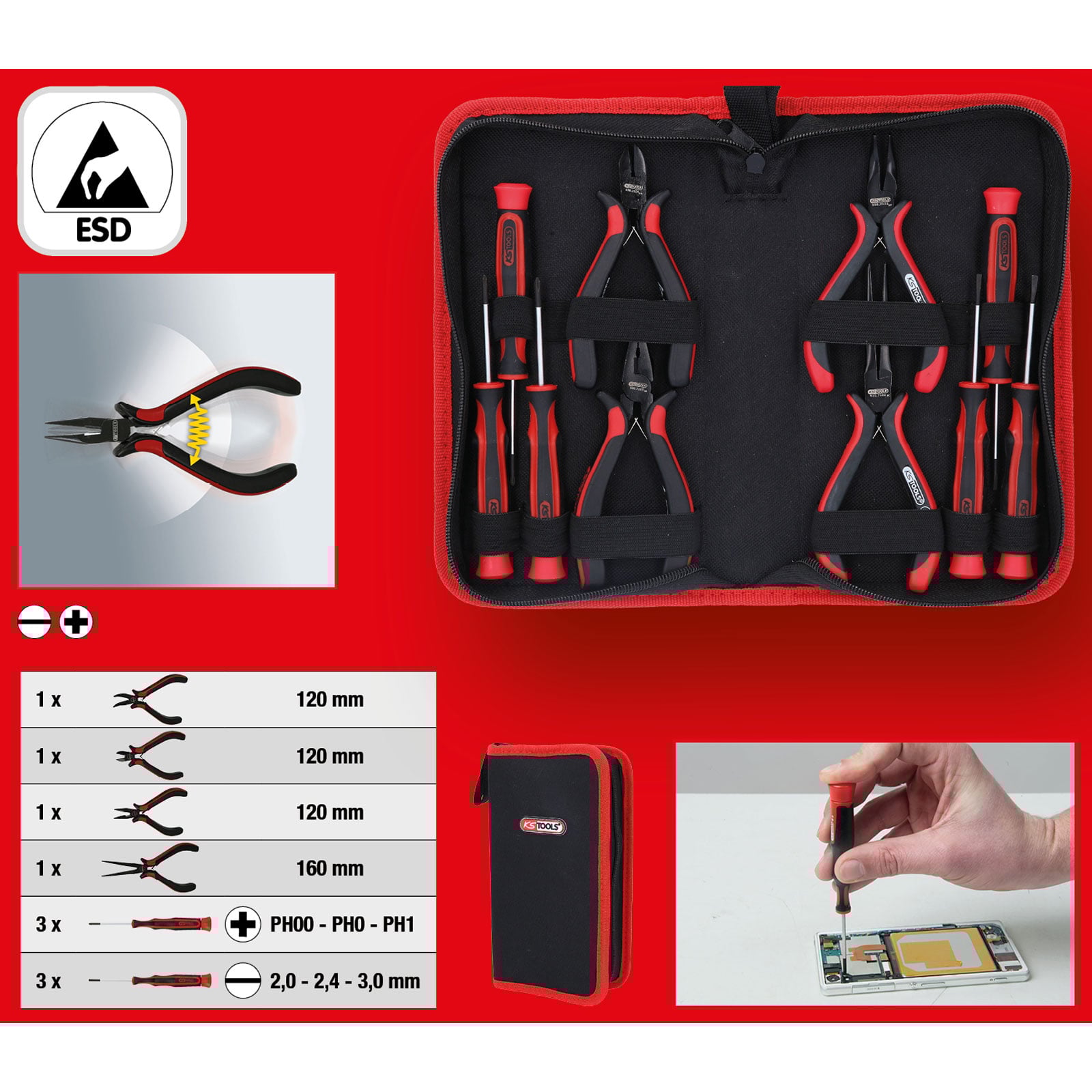 - inklusive Feinmechanik-Schraubendrehern und Zangen