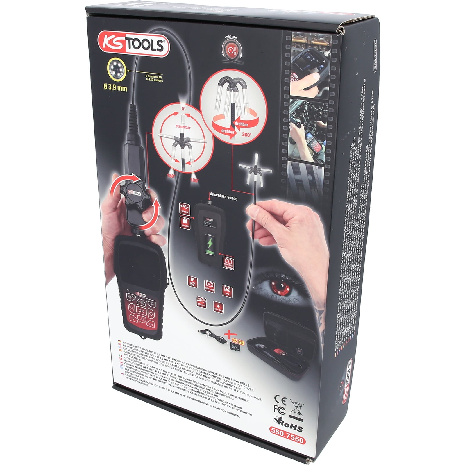 "KS TOOLS HD-Videoskop-Satz mit Ø 3,9 mm 180° und 0° HD Frontkamera-Sonde flexible PVC Hülle 3tlg. - 550.7550"