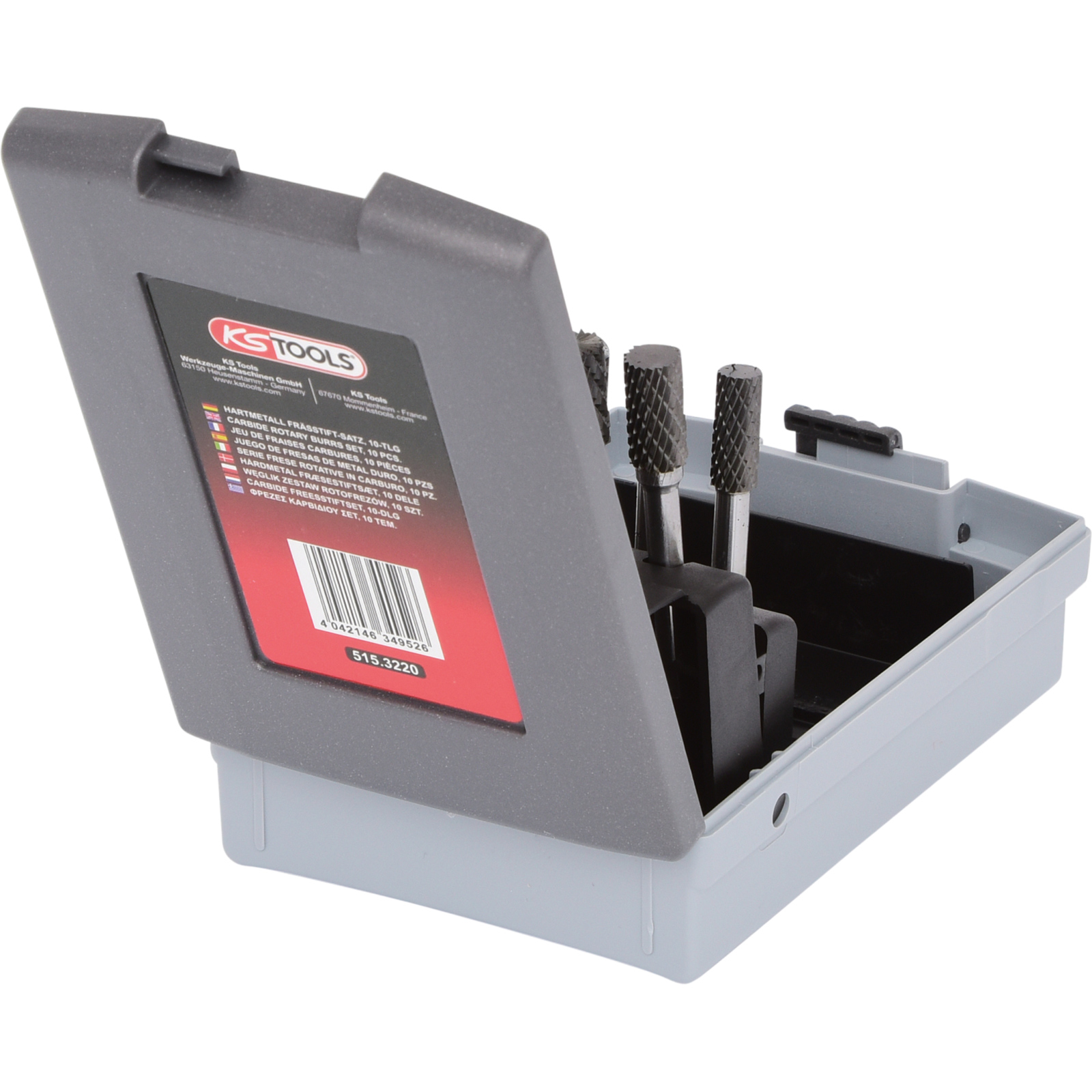 "KS TOOLS HM Frässtift-Satz Kunststoffkassette 10tlg. - 515.3220"
